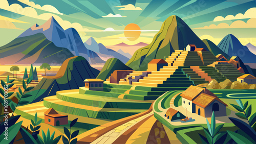 Conceptual zen garden illustration portraying tranquility and harmony with nature