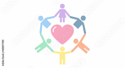 Inclusive community silhouettes, diverse people illustration, wheelchair user, family unity, colorful figures, accessibility concept, multigenerational group, equality, support, harmony