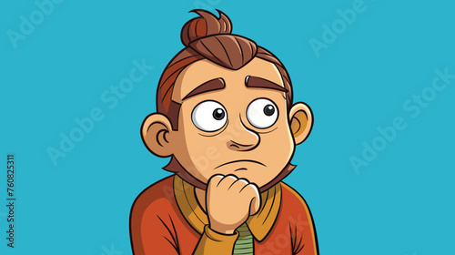 Concerned Cartoon Man With Hand on Chin Against Blue Background