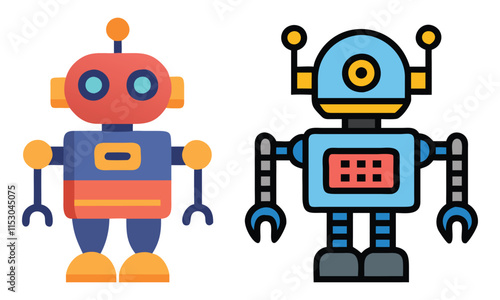 Cartoon robot characters set, cute futuristic droids vector, friendly AI machines illustration, children robot clipart icons, retro android design collection