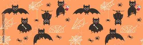 Cute bat baby spooky character, creature comic wings and face.Halloween monster. Friendly black bat character