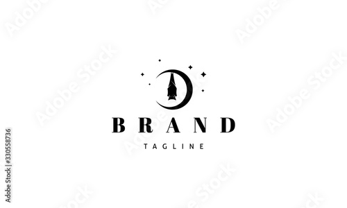 Vector isolated icon illustration of cartoon bat hangs upside down on a branch, black silhouette of halloween bat