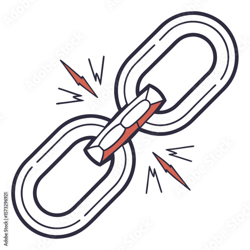 A chain link with a broken connection and lightning bolts emanating from the point of failure shown