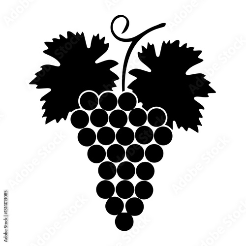 Grape cluster with vine and leaves in vintage style. Botanical vector illustration with handdrawn details.