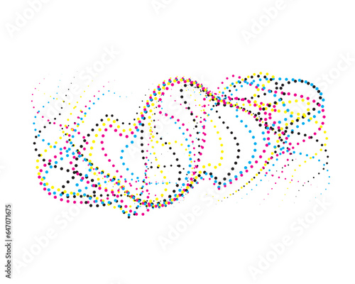 CMYK dot pattern background. Halftone dotted prepress color ink texture. Vector abstract printed production design. Bitmap pop art banner bg. Postscript rip chart illustration
