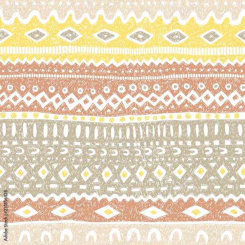 Seamless ethnic pattern. Striped geometric background drawn by hand. Vector illustration.