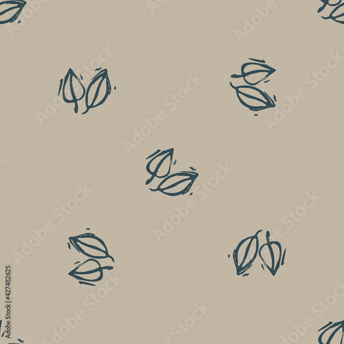 Handmade carved forest leaf block print seamless pattern. Rustic heritage folk art woodland background. Scandi or ethnic indian lino cut design. Naive organic neutral tone primitive all over texture.