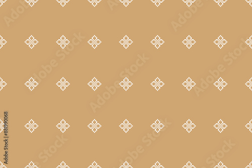 Traditional ethnic motifs ikat geometric fabric pattern cross stitch.Ikat embroidery Ethnic oriental Pixel brown cream label background. Abstract,vector,illustration. Texture,decoration,wallpaper.