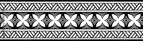 Polynesian tattoo design tribal border. Tribal design ethnic ornament maori band. Samoan Tattoo ribbon sleeve bracelet. Fabric seamless isolated hawaiian armband pattern on white background.