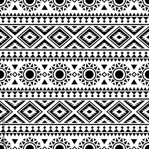 Geometeric seamless ethnic pattern background design vector in black white color. Traditional aztec pattern design. Seamless pattern 0120A3