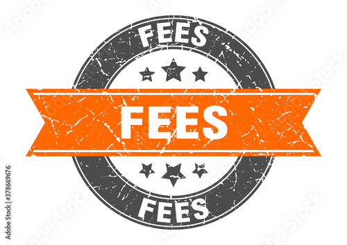 fees. fees round pink label isolated on transparent background