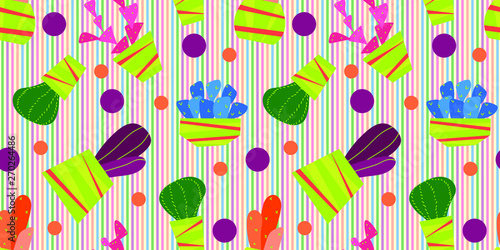 Seamless pattern on a blue background. Flower pot.
