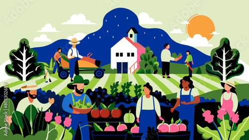 Diverse activities in gardening illustrated with simple vector designs that capture the beauty of nature