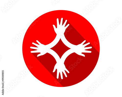 Drawing of diverse group huddle and high five hands together in office workshop. one line Icon drawing with white background