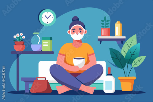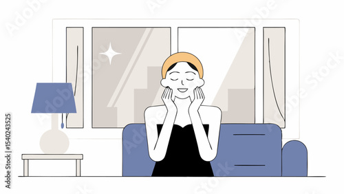 Women enjoy skin care routine at home illustration