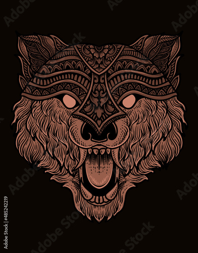 wolf head vector. Vector hand drawn doodle wolf head illustration. Zen tangle decorative wolf head drawing. Wolf Vintage Logo Stock Vector