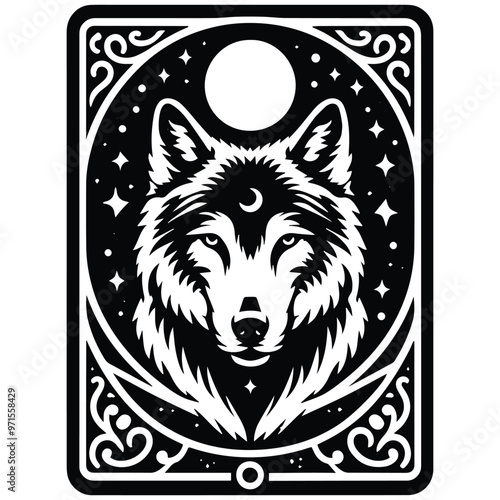 Silhouette of wolf howling at the full hunter's moon vector illustration. Pagan totem, wiccan familiar spirit art