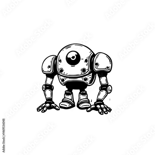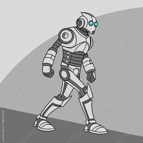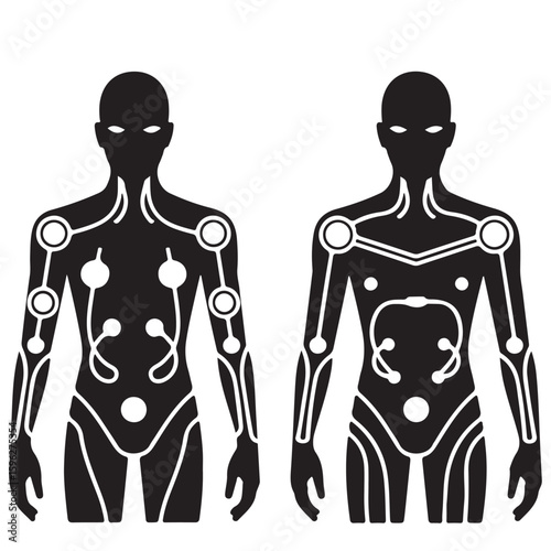 humanoid defense robots with hydraulic tubes and chest plates black and white vector.eps