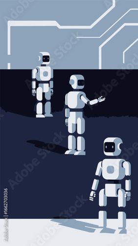 Robotic figures with geometric shapes android humanoid
