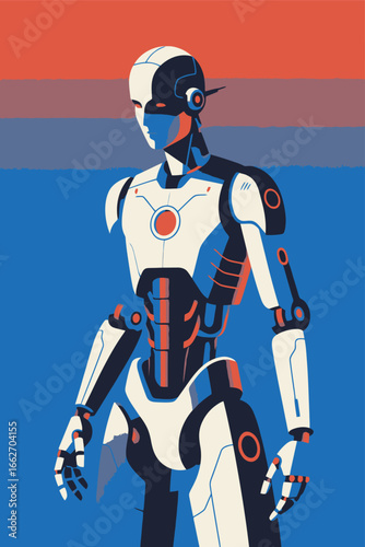 Artificial intelligence robotics with humanoid robot and robotic arm illustration