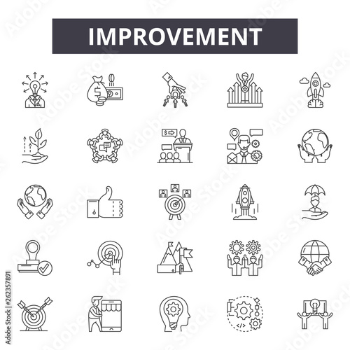 Improvement line icons, signs set, vector. Improvement outline concept illustration: improvement,growth,business,success,arrow,increase