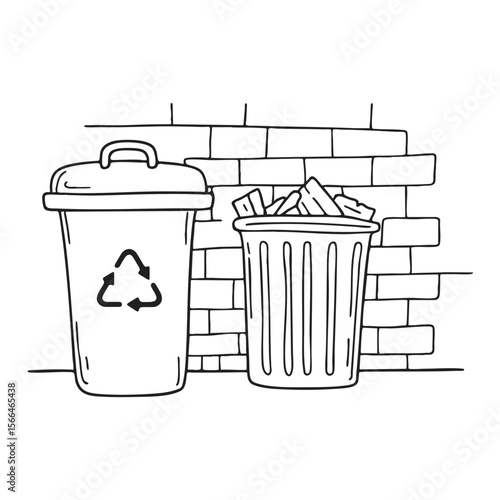 scenic waterfall in forest landscape with rocks and trees in line drawing