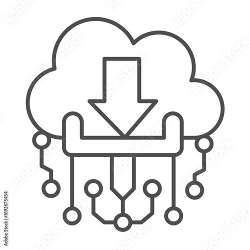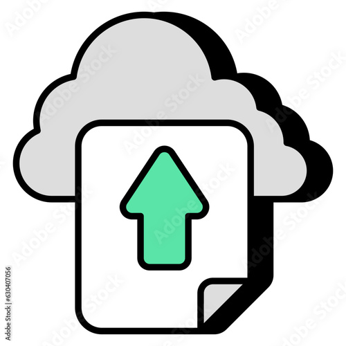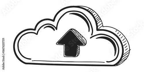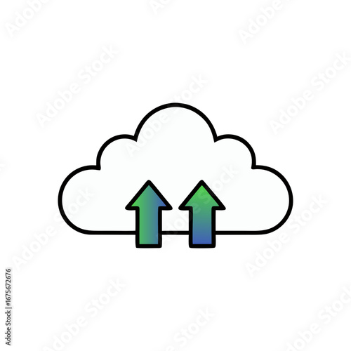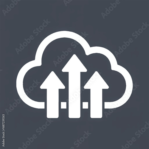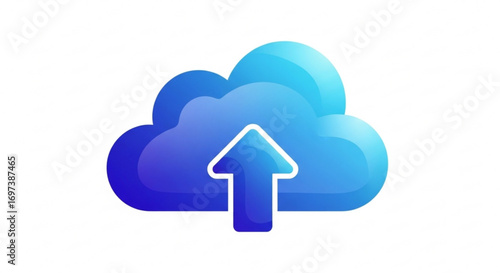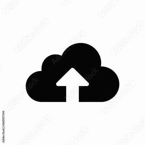 Cloud upload icon with arrow pointing up, representing data transfer and storage isolated on