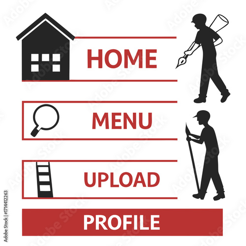 user interface infographic element with outline icons and 6 step or option. user interface icons such as upload button, crossroad, bridge, export arrow, press play button, industrial action vector.