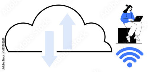 Cloud computing data transfer upload download backup server network storage technology concept vector