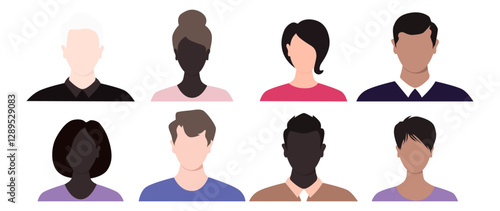 Collection of male and female human profile faceless avatar on white background