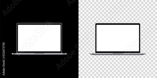 Laptop computer displaying web browser window with generic content flat design illustration