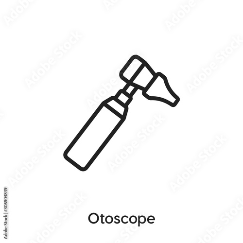 Otoscope pixel perfect white linear icon for dark theme. Medical instrument. Ear health. Physical examination. Thin line illustration. Isolated symbol for night mode. Editable stroke