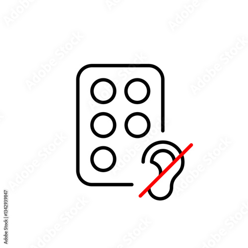 Hospital and ear crossed symbol. Audiologist, otolaryngologist treating hearing loss. Health services designed for deaf or hard-of-hearing patients, such as sign language communication. Pixel perfect,