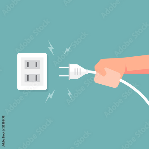 Electric socket with a plug. Connection and disconnection concept. Concept of 404 error connection. Electric plug and outlet socket unplugged. Wire, cable of energy disconnect