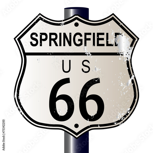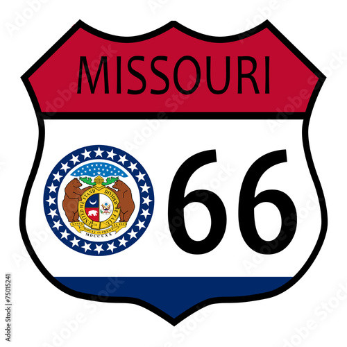 Route 66 Verkehrszeichen aus USA / Amerika mit allen betroffenen Staaten in History Design auf einem isolierten weißen Hintergrund