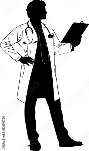 Two nurses in silhouette holding clipboards silhouette