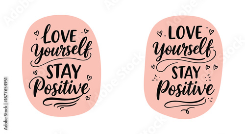 Empowering affirmation 'love yourself' in elegant typography with abstract shapes and heart accent for positive messaging and self-care designs vector