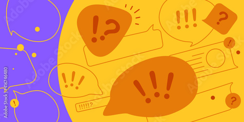 Warning sign, face with voice recognition interface, envelopes with alert symbols. Ideal for communication failure, caution, error, system notification, cybersecurity, spam filtering and digital