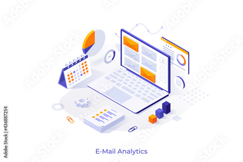 isometric set of mail envelopes with icons in color on a white background, mail message or verified and viral letter