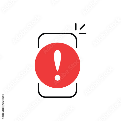 3D Phone with red exclamation mark. Smartphone with important notification. Spam in email. Mobile error or problem. Alert message. Warning sign. Cartoon design icon. 3D Vector illustration