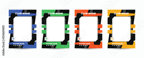 Set of player trading card template, Photo frame and border collection for soccer, hockey, volleyball, and basketball players, Sport flyer layout design, Template eps 10.