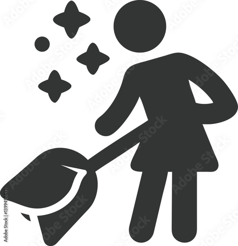 A dynamic silhouette of a woman holding cleaning cloths or towels, set against a plain white background.
