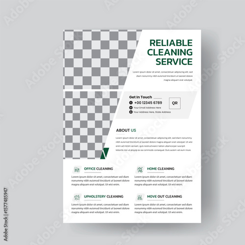 Cleaning tools frame consisting of cleaning supplies, equipment and cleaning lady