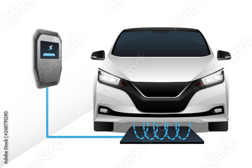 Wireless EV Charging. Wireless Charging System for Electric Vehicle Illustration.