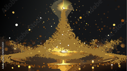 Winter Tree Silhouette Under Moonlight in Snowy Landscape Illustration.