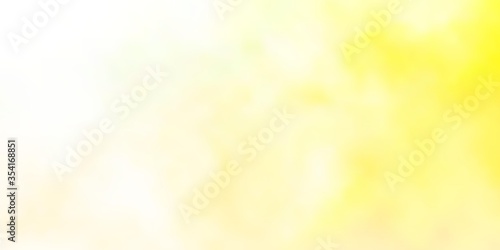 Light blue, yellow and white gradient background. Abstract beautiful blue clear sky with white clouds and blurry sun texture. Pastel minimal sky. Soft horizontal vector illustration for banner, poster