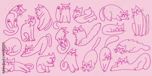 Playful Paws & Cute Cats: A collection of adorable cartoon cats with unique personalities alongside pink paw prints. These charming illustrations are perfect for a wide range of creative projects.