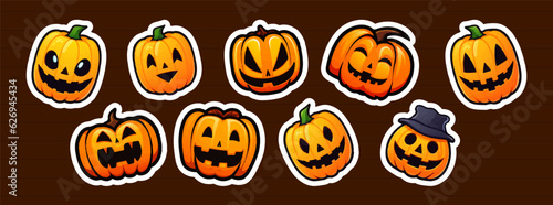 Halloween pumpkin vector set, spooky jack o lantern faces, carved pumpkins, scary expressions, Halloween decoration, pumpkin silhouettes, creepy designs, October festivities, Halloween graphics