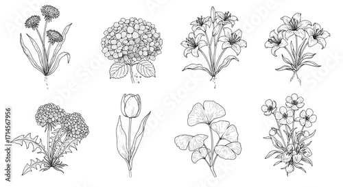 Elegant Line Art Collection Floral Designs for Creative Projects