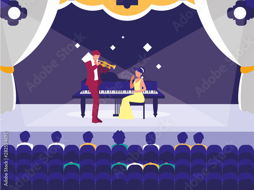 Silhouettes of Male, Female, Audiences. icon isolated on white background